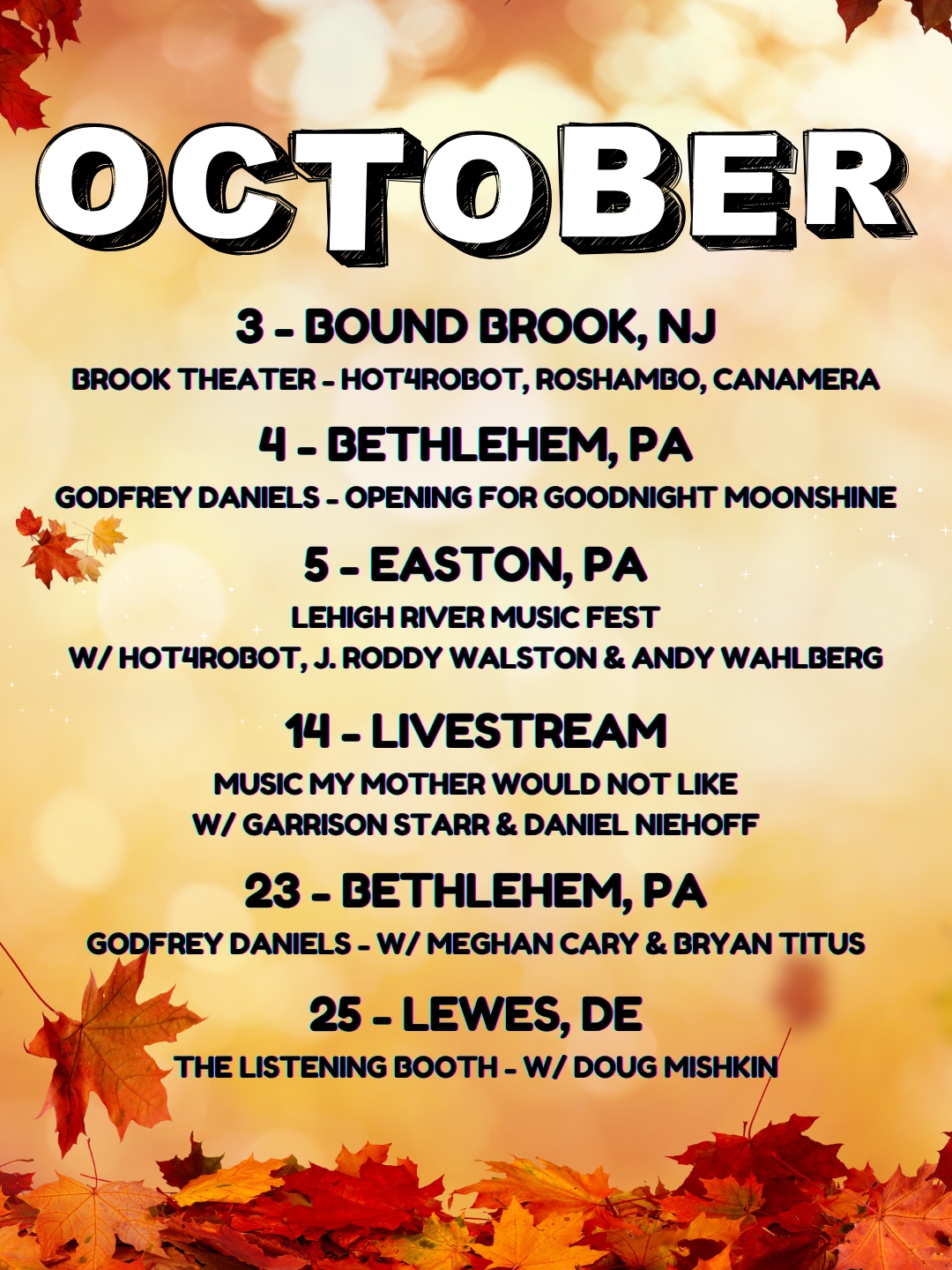 October Tour Dates by Alex Radus | Sep 25, 2025 | Uncategorized | 0 comments Details and Tickets Submit a Comment Cancel replyYou must be logged in to post a comment.